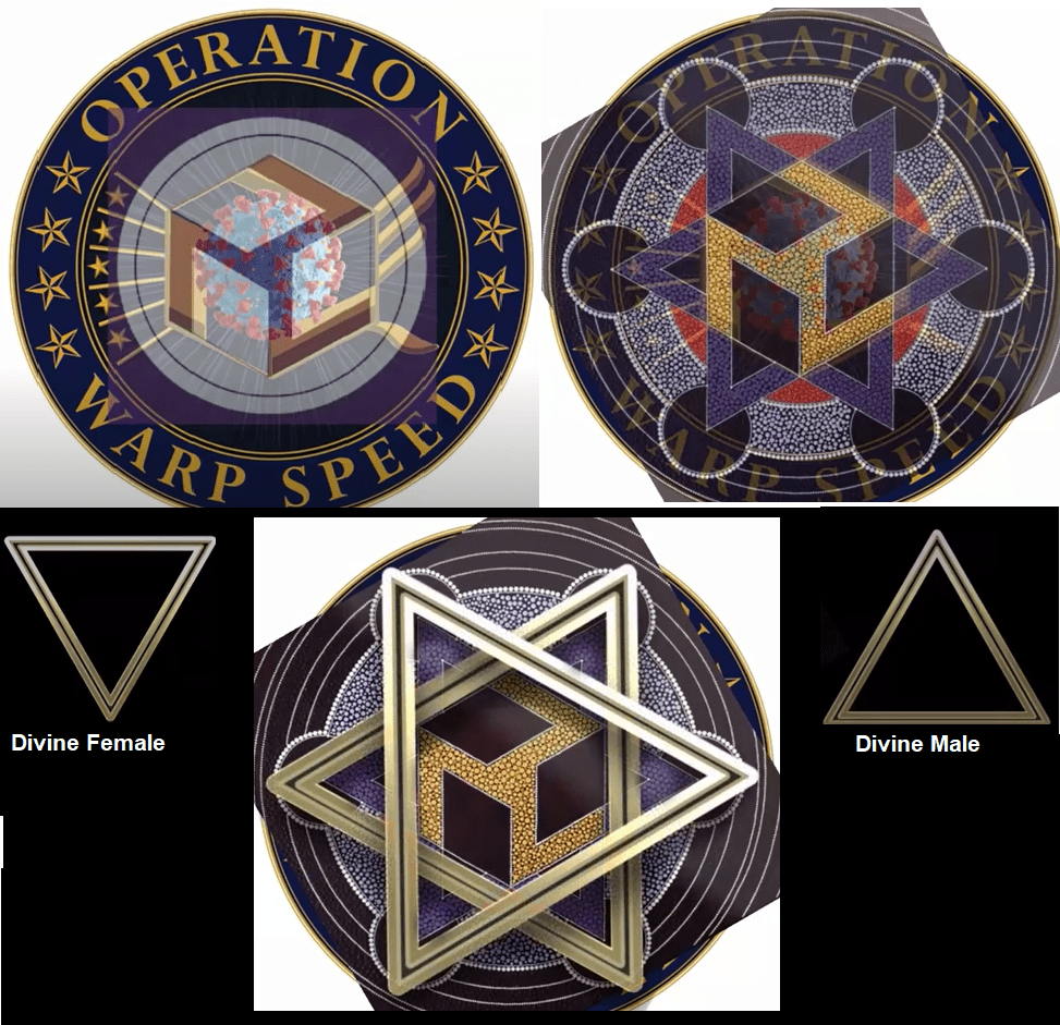 Unter den Namen „Operation Warp Speed (OWS)“ [Operation Lichtgeschwindigkeit] werden gerade in den USA die ersten COVID-19 Impfstoffe hergestellt und vertrieben. Dabei wird der Fokus besonders auf der schnellen Massenproduktion und möglicht schnellen Verbreitung gelegt. Diese noch von Trump abgesegnete Operation ist ein Zusammenschluß verschiedener US-Regierungsbehörden und dem pharmazeutischen Privat-Sektor. Allen voran des Verteidigungsinisteriums und des ‚Ministeriums für Gesundheitspflege und Soziale Dienste‘ (Department of Health and Human Services HHS). Geleitet wird das ganze Vorhaben auch vom US-Army General Gus Perna – und was ist die Aufgabe der Army? Den Feind mit Waffen zu besiegen. Wie jede militärische Operation hat auch Operation Warp Speed ein schickes Emblem bekommen. Doch beim genaueren Betrachten davon (auf der Seite des Department of Defense) wurde ich stuzig. Wie immer wird hier durch Symbolismus kommuniziert der für den Un-Iniziierten nicht greifbar ist. Ich hoffe das inzwischen jeder begreift das Symbolismus ihre Art der Kommunkation ist. Das ist alles kein Zufall. Einmal ist keinmal, zweimal ist Zufall und ab dem dritten mal beginnt ein Muster.
