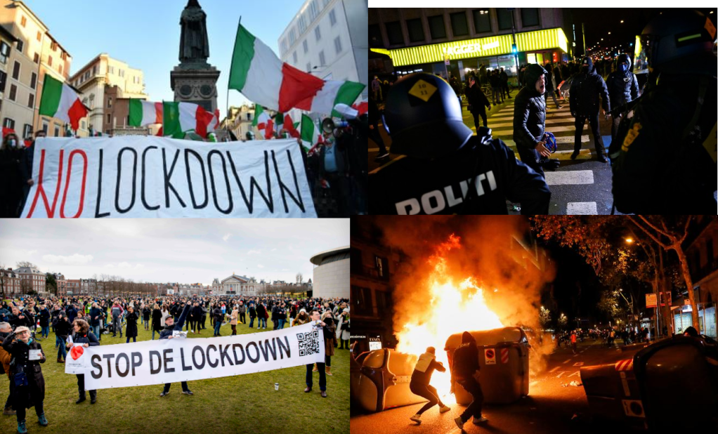 In Dänemark, Spanien, Frankreich, Italien, Bulgarien und Australien gehen die Menschen gegen den Lockdown und Impf-Nachweise auf die Straße und im Libanon werden vor Frust ganze Regierungsgebäude in Brand gesetzt. In den Niederlanden regte sich auch massiver Wiederstand, dort randerlierte die Jugend gegen die Ausgangspeeren, kämpfte tagelang mit der Polizei und sie fackelten sogar Autos und eine Corona-Teststelle ab. Darüber wurde natürlich in den MSM berichtet, denn das ist die Art wie sie sich ihre „Corona-Gegner“ wünschen: ein wütender Mob mit Heugabel und Fackel gegen die man hart vorgehen kann. Als Warnung an den deutschen Michel: Wenn ihr aufmuckt bekommt ihr einen Schlagstock in die Fresse! Das sich hier die Gewalt wieder gegen die lokalen Kleinbetriebe richtet ist sehr fraglich und erinnert an die Provocateur-Agenten Aktionen aus den USA im letzten Sommer. Das befeuert den ‚Great Reset‘ nur weiter an.